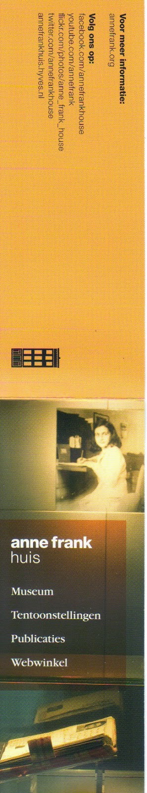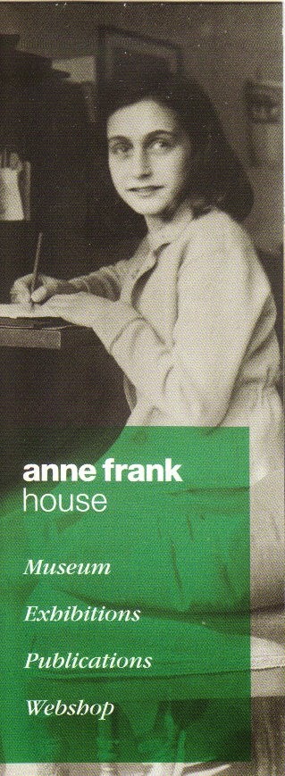 Um marcador (dobrado) da casa de Anne Frank. Em cima, a frente; em baixo, o interior aberto.