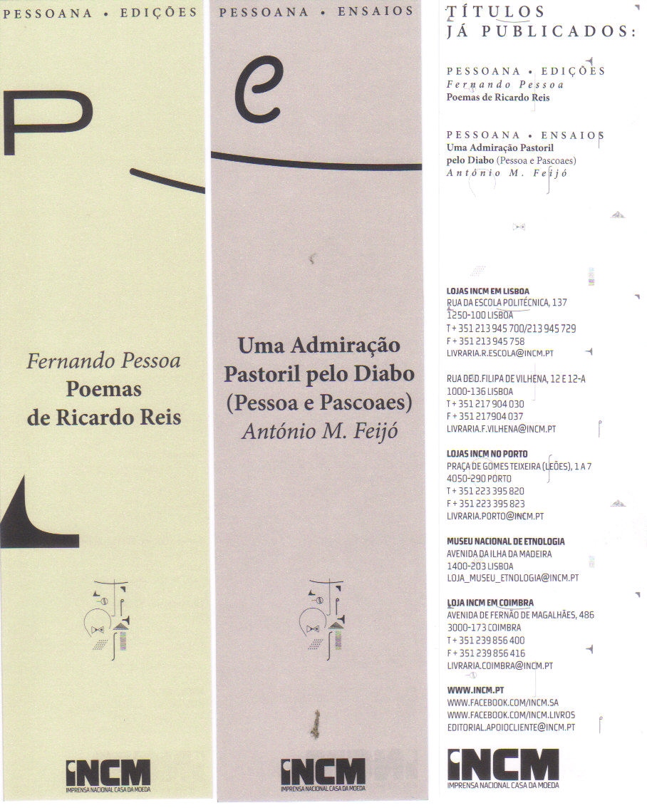 Fernando Pessoa, Poesias Inéditas (1919-1930). Nota prévia de Vitorino Nemésio e notas de Jorge Nemésio.) Lisboa: Ática, 1956 (imp. 1990), p. 83.
