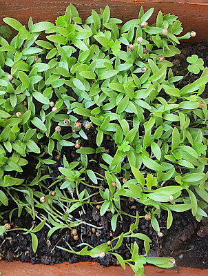 Os coentros são de uma plantação anterior e não foram oferecidos, mas achei graça juntar porque nasceu um trevo. É pena ser de três folhas.