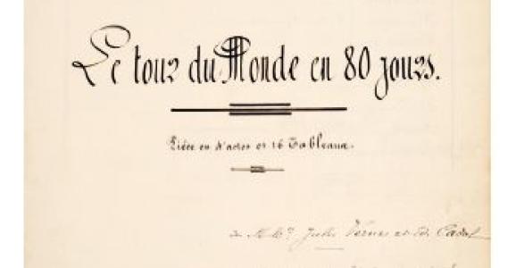 - O único exemplar manuscrito que se conhece da Volta ao Mundo em 80 dias , um projecto de peça de teatro que precedeu a publicação do romance . ( € 10 000 - 12 000 )
