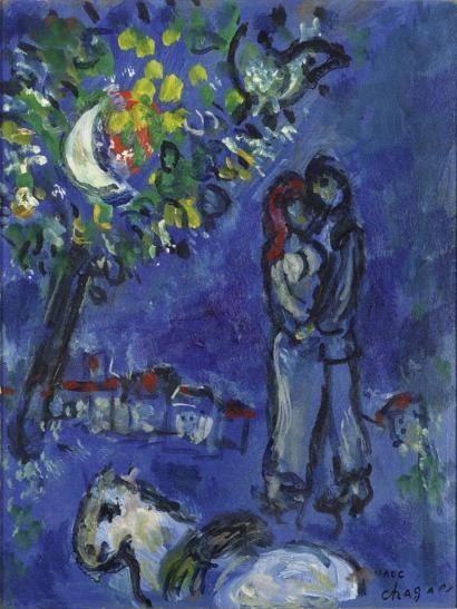 Quase não seria preciso dizer quem pintou este pequeno óleo sobre cartão ( 27x20,5cm ) , datado de 1967 quando Marc Chagall vivia em Vence .