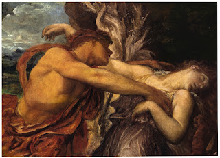 Um dos melhores pintores britânicos do séc.XIX, George Frederic Watts ( 1817-1904 ) , era fascinado pelo mito de Orfeu e Eurídice, que representou pelo menos oito vezes. Esta versão, 56x76cm, é de 1870 e esteve na posse de Lilian Chapman, filha adoptiva do pintor, e dos seus descendentes até 1992 quando foi vendida pela primeira vez. No passado mês de Julho foi vendida outra vez, na Sotheby's de Londres, por 320 000 libras .