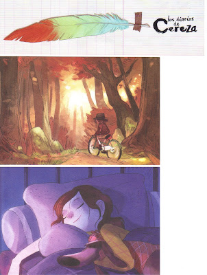 Um marcador (verso e reverso) e dez postais dos Los diarios de Cereza, de Joris Chamblain e com il. de Aurelie Neyret, editados pela Alfaguara. Com um agradecimento a Justa.